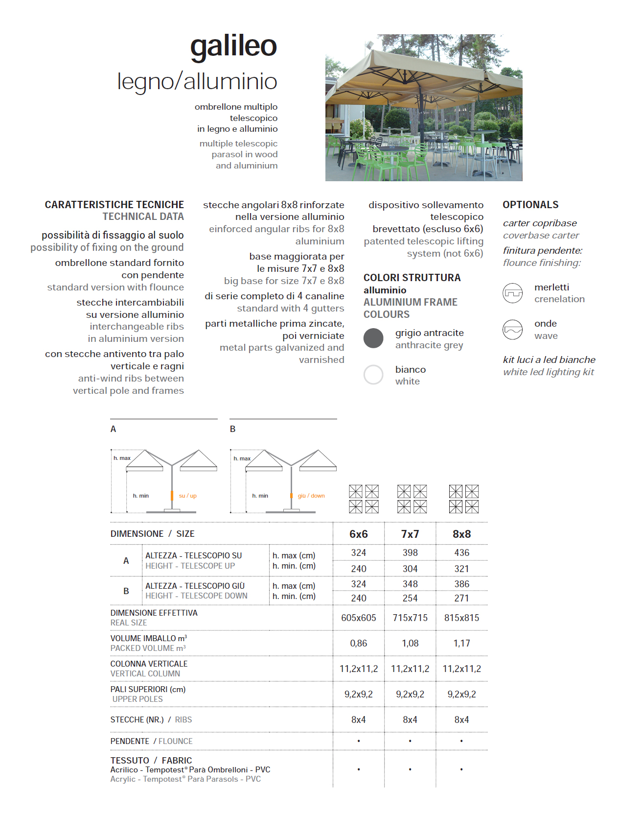 Tempotest® Parà Ombrellonigr. 300 m / q, geverfd buiten, hoge weerstand tegen vervaging, teflonbehandeling voor hydro- en vuilafstotendheid.