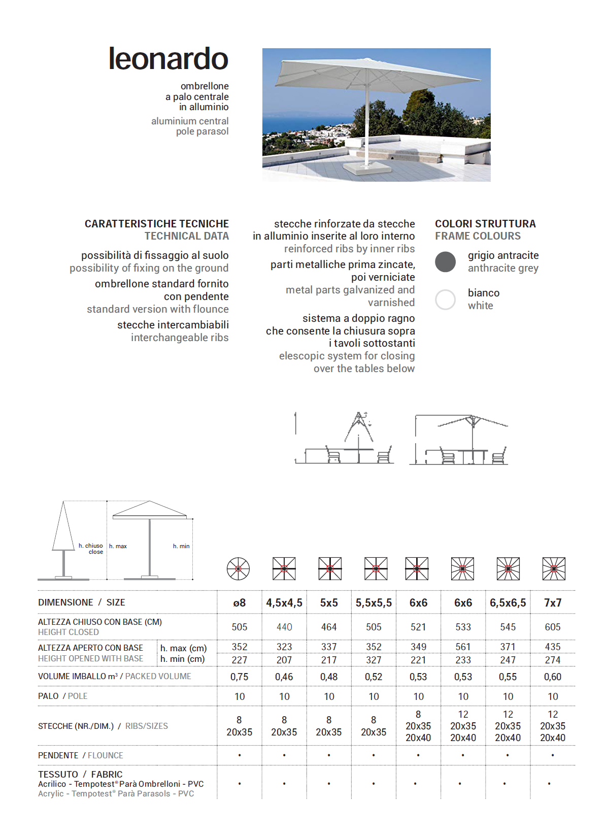 Tempotest® Parà Ombrellonigr. 300 m / q, geverfd buiten, hoge weerstand tegen vervaging, teflonbehandeling voor hydro- en olieafstotendheid.