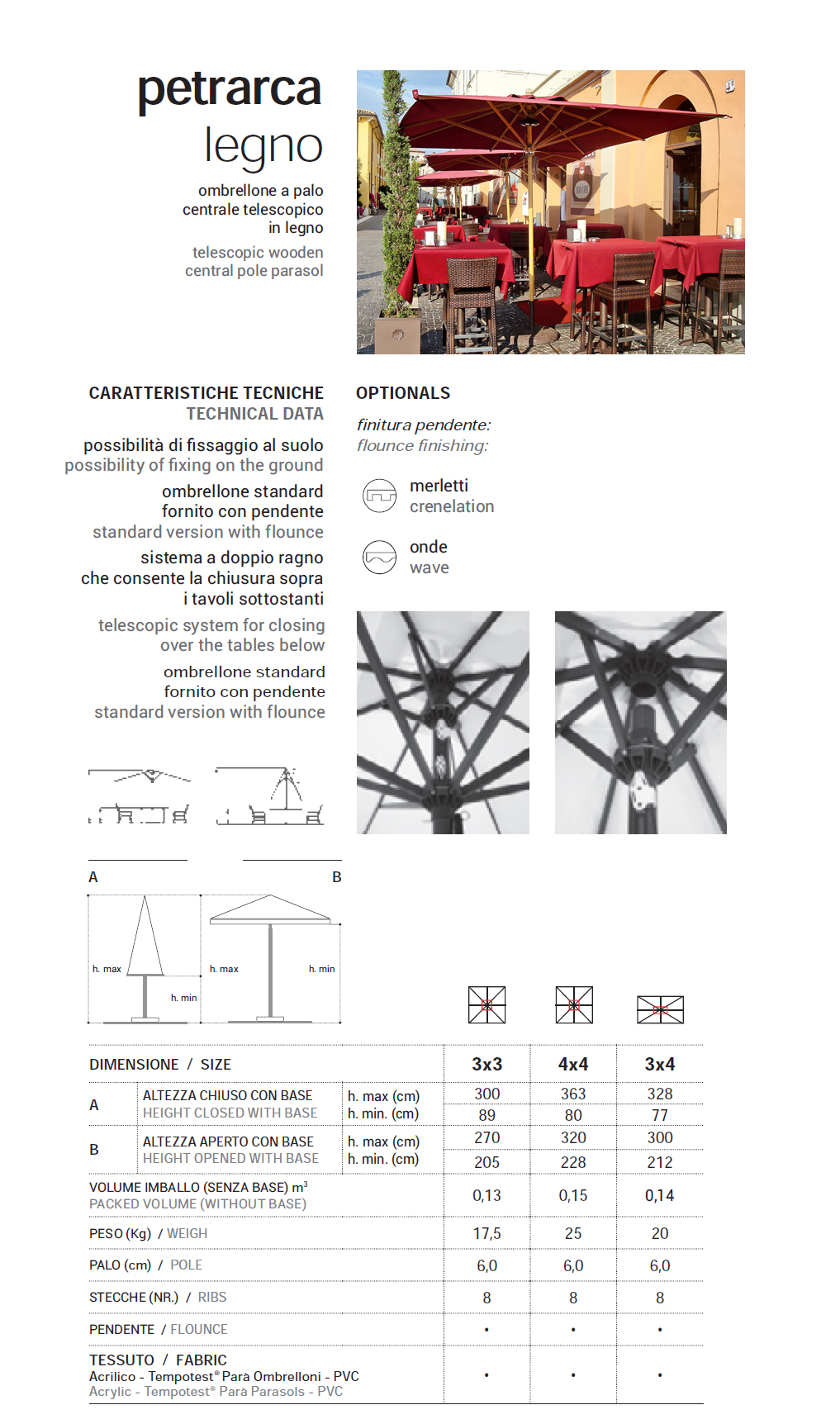 Tempotest® Parà Ombrellonigr. 300 m / q, geverfd buiten, hoge weerstand tegen vervaging, teflonbehandeling voor hydro- en vuiafstotendheid.